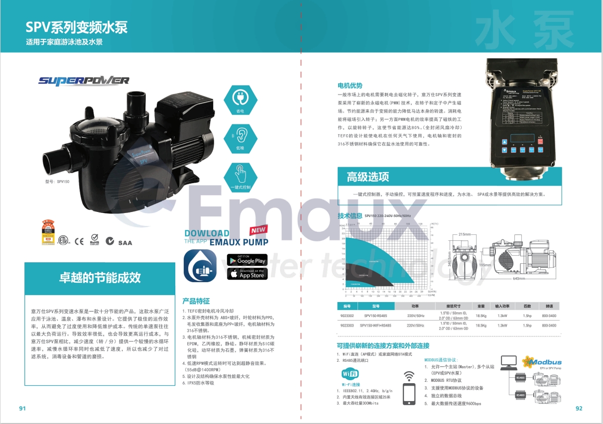 意萬仕SPV系列變速水泵是一款十分節(jié)能的產(chǎn)品,這款水泵廣泛應(yīng)用于泳池,溫泉,瀑布和水景設(shè)計。它提供了極佳的運作效率,從而避免了過度使用和降低維護成本。傳統(tǒng)的單速泵往往以最大負荷運行。導(dǎo)致效率很低,也會導(dǎo)致更高運行成本,與意萬仕SPV泵相比,減少速度(轉(zhuǎn)/分)提供一個較慢的水循環(huán)速率,減慢水循環(huán)率同時也減低了速度,所以也減少了對過濾系統(tǒng),消毒設(shè)備和管道的磨損。