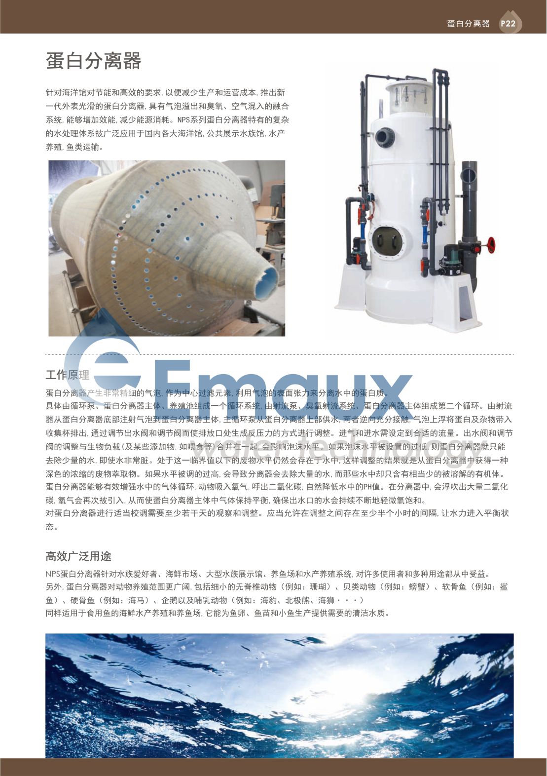 具體由循環(huán)泵、蛋白分離器主體、養(yǎng)殖池組成一個(gè)循環(huán)系統(tǒng), 由射流泵、臭氧射流系統(tǒng)、蛋白分離器主體組成第二個(gè)循環(huán)。 由射流器從蛋白分離器底部注射氣泡到蛋白分離器主體, 主循環(huán)泵從蛋白分離器上部供水, 兩者逆向充分接觸, 氣泡上浮將蛋白及雜物帶入收集杯排出, 通過(guò)調(diào)節(jié)出水閥和調(diào)節(jié)閥而使排放口處生成反壓力的方式進(jìn)行調(diào)整。 進(jìn)氣和進(jìn)水需設(shè)定到合適的流量。 出水閥和調(diào)節(jié)閥的調(diào)整與生物負(fù)載(及某些添加物如喂食等)合并在一起, 會(huì)影響泡沫水平。 如果泡沫水平被設(shè)置的過(guò)低, 則蛋白分離器就只能去除少量的水, 即使水非常臟。 處于這一臨界值以下的廢物水平仍然會(huì)存在于水中, 這樣調(diào)整的結(jié)果就是從蛋白分離器中獲得一種深色的濃縮的廢物萃取物。 如果水平被調(diào)的過(guò)高, 會(huì)導(dǎo)致分離器會(huì)去除大量的水, 而那些水中卻只含有相當(dāng)少的被溶解的有機(jī)體。蛋白分離器能夠有效增強(qiáng)水中的氣體循環(huán), 動(dòng)物吸入氧氣呼出二氧化碳自然降低水中的PH值。 在分離器中, 會(huì)浮吹出大量二氧化碳氧氣會(huì)再次被引入從而使蛋白分離器主體中氣體保持平衡, 確保出水口的水會(huì)持續(xù)不斷地輕微氧飽和。