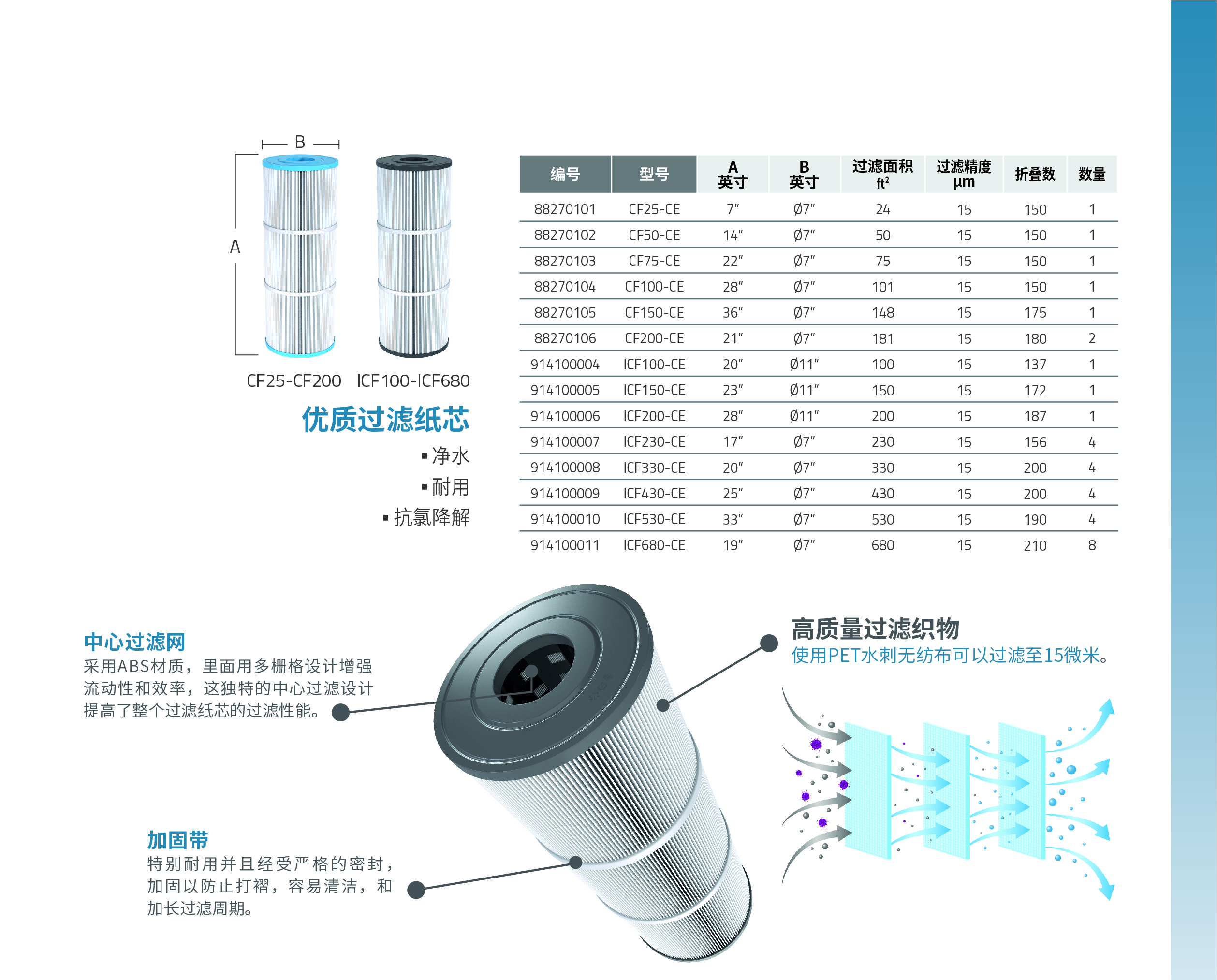 意萬仕過濾紙芯采用優(yōu)質織物材料,能夠有效過濾泳池或水療池水中的污垢、碎屑和其他顆粒。其設計堅