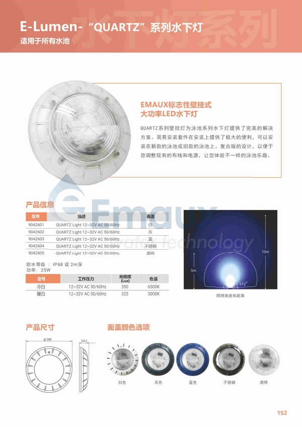 QUARTZ系列壁掛燈為泳池系列水下燈提供了完美的解決方案。簡易安裝套件在安裝上提供了極大的便利,可以安裝在新的泳池或原有的泳池上。復(fù)古版的設(shè)計,以便于您調(diào)整現(xiàn)有的布線和電源,讓您體驗不一樣的泳池樂趣。