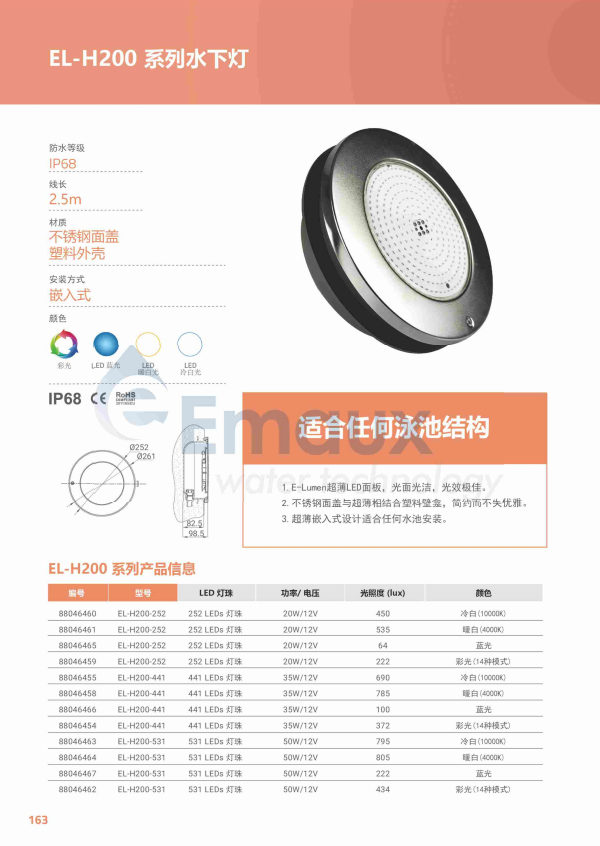 1.E-Lumen超薄LED面板,光面光潔,光效極佳。 2.不銹鋼面蓋與超薄相結(jié)合塑料壁龕,簡約而不失優(yōu)雅。 3.超薄嵌入式設(shè)計適合任何水池安裝。