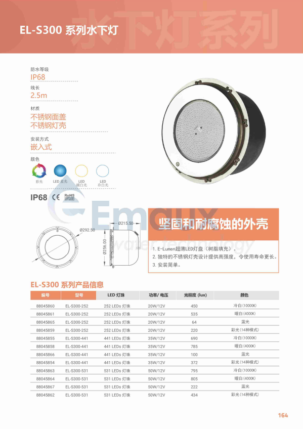 1.E-Lumen超薄LED燈盤(樹(shù)脂填充) 2.獨(dú)特的不銹鋼燈殼設(shè)計(jì)提供高強(qiáng)度,令使用壽命更長(zhǎng) 3.安裝簡(jiǎn)單