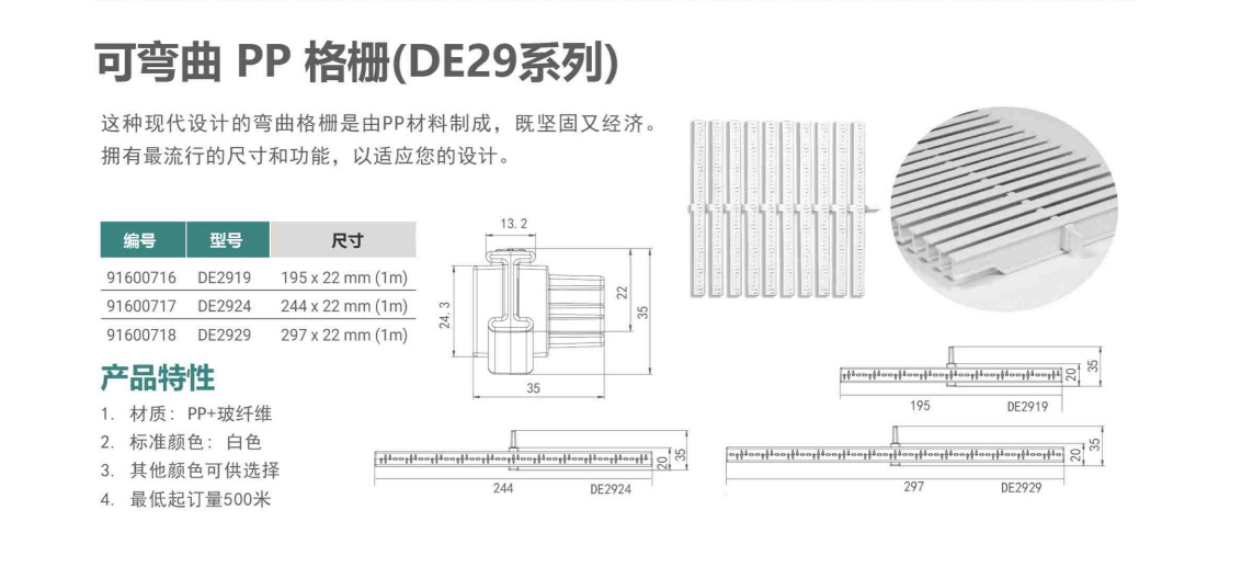 可彎曲 PP 格柵(DE29系列)