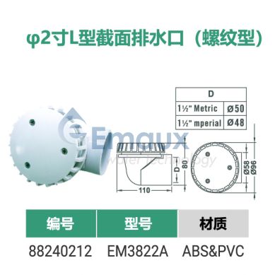 您的位置:首頁>產(chǎn)品概覽>SPA配件>φ2寸L型截面排水口(螺紋型)
