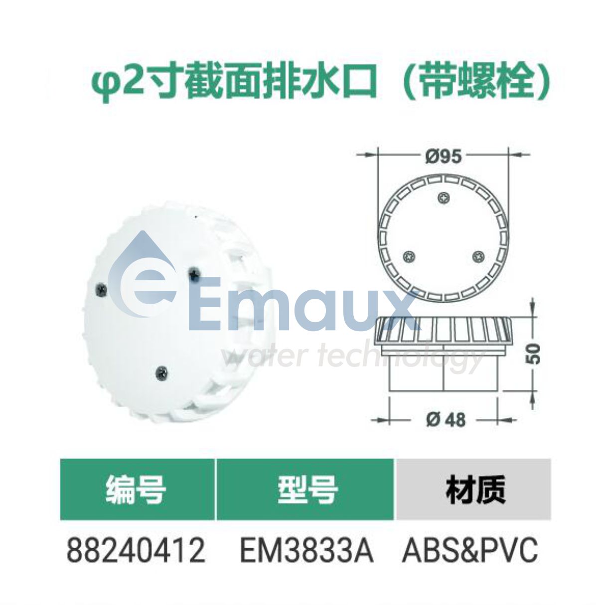 您的位置:首頁>產(chǎn)品概覽>SPA配件>φ2寸截面排水口(帶螺栓)